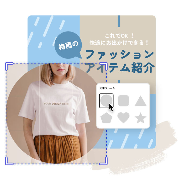 背景透過(削除)機能を使えば、不要な映り込みを消し、被写体を強調できます。画像を選択してから背景除去オプションを選択すれば、Adobe Expressによって背景だけを自動的に取り除くことが可能です。また、編集済みの画像をお好きな図形で型抜きすれば、さらに画像が際立たちます。