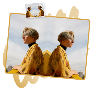 Adobe Expressなら、画像を左右または上下に反転させて、鏡に映ったようなデザインをカンタンに作成できます。完成したデザインは、お好みのオンラインサービスに投稿しましょう。