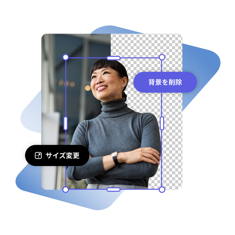 Adobe Expressがあれば、背景を手軽に削除できます。画像をアップロードしたら、「背景を削除」のボタンを押すだけで作業が完了します。背景を削除した画像をダウンロードしたり、共有したりするのもカンタンです。