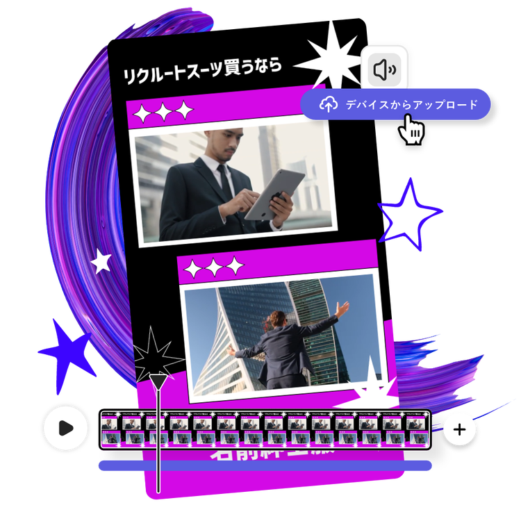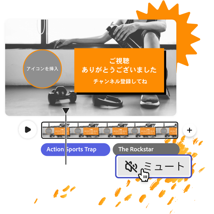 Adobe Expressを使うと、サウンドエフェクトや音楽、オーディオファイルを手軽に動画に追加できます。カンタン操作で、動画編集の経験がない方でも安心して使えます。