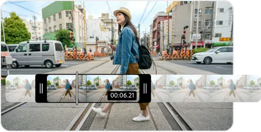 動画トリミングツールを使って、いいとこ取りをしましょう。ハンドルバーを使ってパラメーターを設定すれば、トリミングしたい瞬間を正確に捉えることができます。