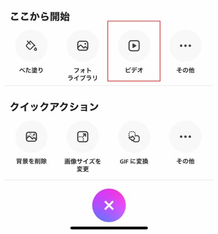 表示された画面で「ビデオ」を選びましょう。ここで、先ほどiMovieで作成した動画を読み込みます。