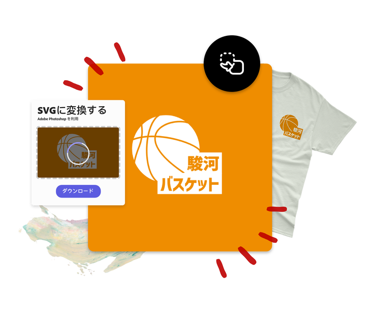 一方、スケーラブルベクターグラフィックス(SVG)は画像の拡大・縮小による画質の劣化が生じない画像のファイル形式です。劣化が起きない理由は、SVGの画像がベクターで構成されており、サイズの拡大・縮小時にシェイプを保持する仕組みにあります。SVGはデザイン業界で非常に広く利用されており、Adobe Expressのユーザーのキットには欠かせないツールです。そのような事情で、アドビはクイック操作に「SVGに変換」を追加しました。これにより、ユーザーはロゴ、グラフィック、チラシ、その他のデザインをベクター化することができます。グラフィックをSVGに変換したら、画質とディテールを保ったまま、デジタルコンテンツや印刷物用に画像のサイズを拡大できます。