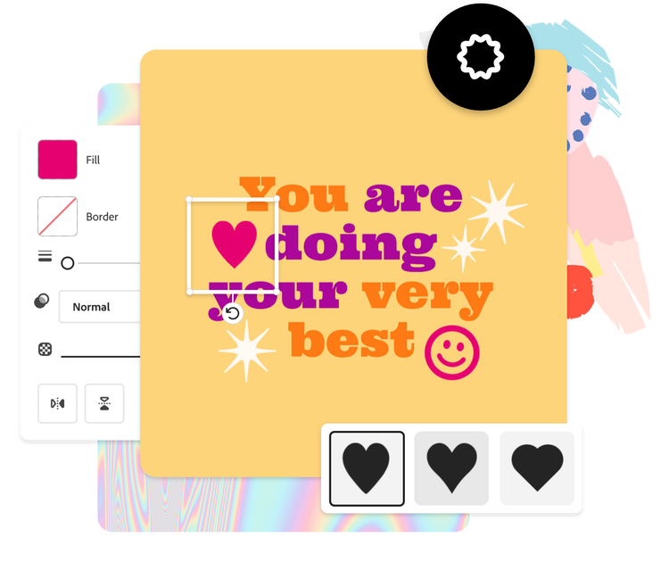 シェイプはデザインプロジェクトの基本構成要素のひとつです。デザインアセットはコンテンツ作成の中核となることから、Adobe Expressのシェイプツールについて、より高い柔軟性を求める声がユーザーの皆様から寄せられていました。そこでこのリクエストに応え、webでもモバイルでもカスタマイズが可能な「基本シェイプ」の新しいライブラリを追加しました。
