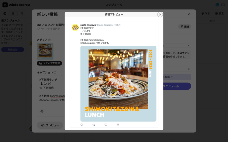「最近はSNS投稿用画像を作成する仕事も増えてきており、デザインを作成し、そのまま投稿の予約ができる Adobe Expressの『予約投稿』機能はとても重宝しています。