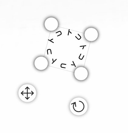 この文字を選択したら、「編集」をタップし「複製」をさらにタップします。この複製された文字に対し、「配置」をタップ。さらに「カーブ」をタップします。すると文字が円状になりました。もう一度、続けて「カーブ」をタップすると、今度は円弧状に変形します。