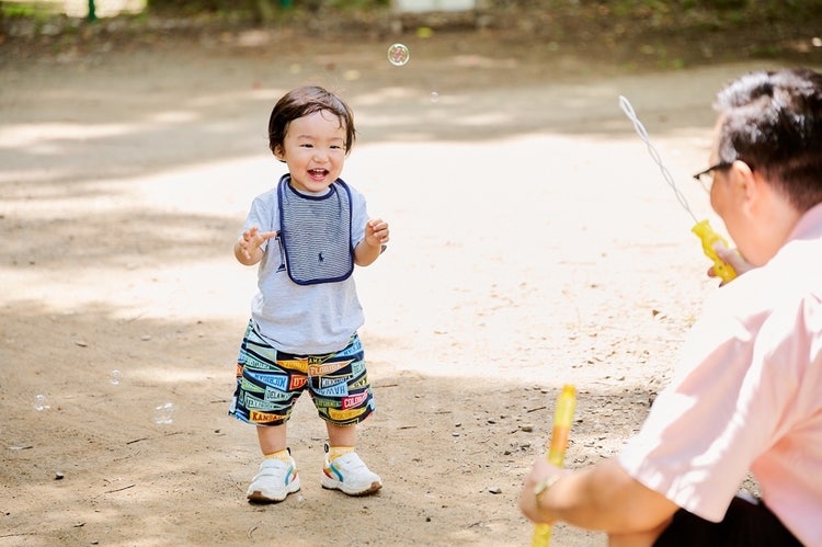 撮影はお母さんにも同行してもらい、ご家族で協力してもらいました。取材スタッフが用意した数々のおもちゃの一部はあまり反応をもらえませんでしたが、ボールやお父さんの用意したシャボン玉には興味津々で、思わずにっこり。