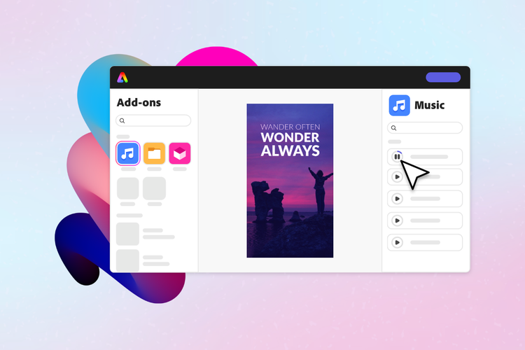 Adobe Expressでは、Adobe Stockの音楽素材のみならず、アドオンを活用することで、かんたんにトレンドの楽曲や効果音を取り入れた魅力的なコンテンツを作成できます。本記事では、6月に新たに追加された音楽アドオン「Audiostock」の概要と使い方をご紹介します。