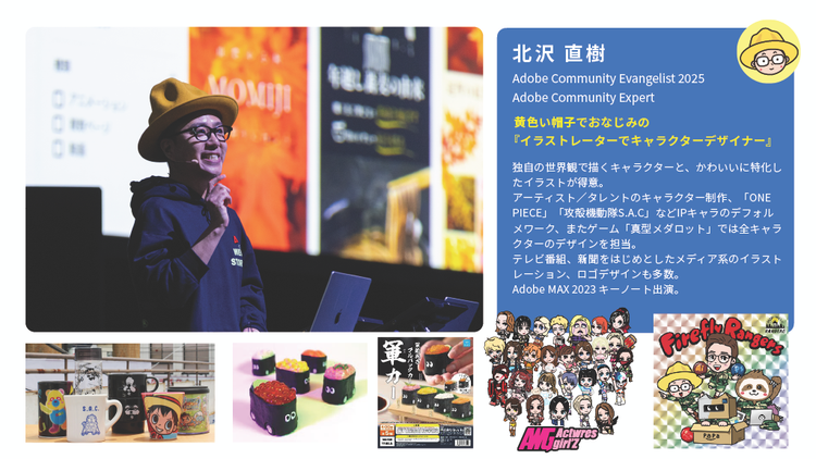 人気アニメ『ONE PIECE』や『攻殻機動隊』のキャラクターグッズデザイン、有名アーティストのコンサートグッズなど、数々の実績をもつプロのクリエイターさんです。