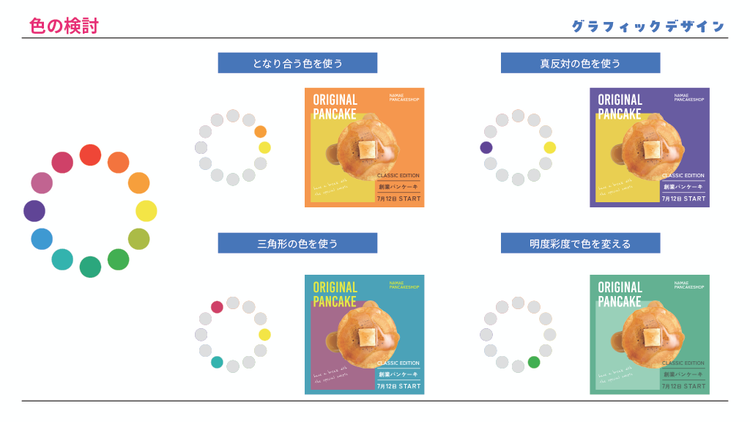 次に、彩度や明度といった基礎的な内容から、色使いのコツを解説してくれました。