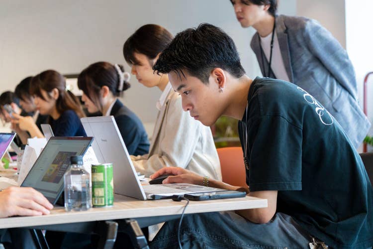 その後、参加者たちも生成AI機能を体験。私服をスーツ姿に、あるいはより自分らしい服装にと、思い思いにAdobe Expressの使い心地を実感していました。