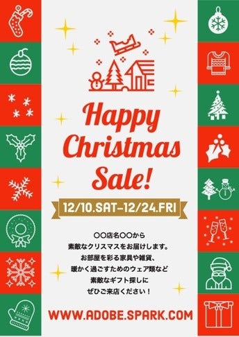 また、11月〜12月はセールの準備やプレゼント需要で繁忙期となります。クリスマスセールやギフト特集のチラシをパパッと作りたいという方は、ぜひAdobe Expressのテンプレートをご利用ください。