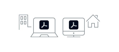 Acrobatサブスクリプション版は、追加費⽤ なしで最⼤2台までのPCで使⽤可能です。会 社だけでなく⾃宅のPCでも利⽤できるので、 テレワークする必要がある場合でも安⼼して お使いいただけます。