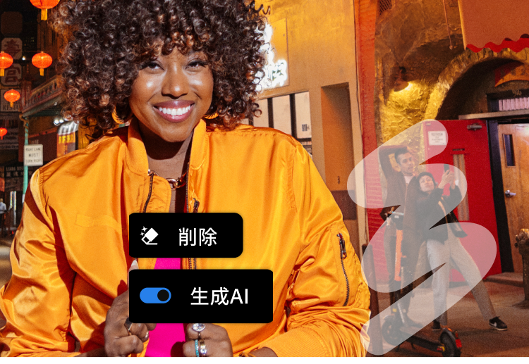 Adobe Fireflyの技術を利用した新機能の「生成削除」を使用すれば、ワンタッチであらゆるものを削除できます。