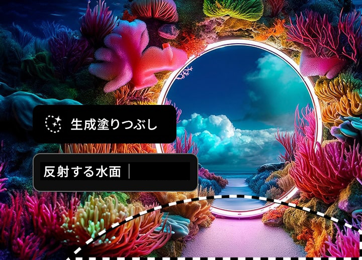 新しい生成AI機能と最先端の生成塗りつぶしを使用すれば、リアルで魅力的な画像をこれまで以上に簡単に生成できます。