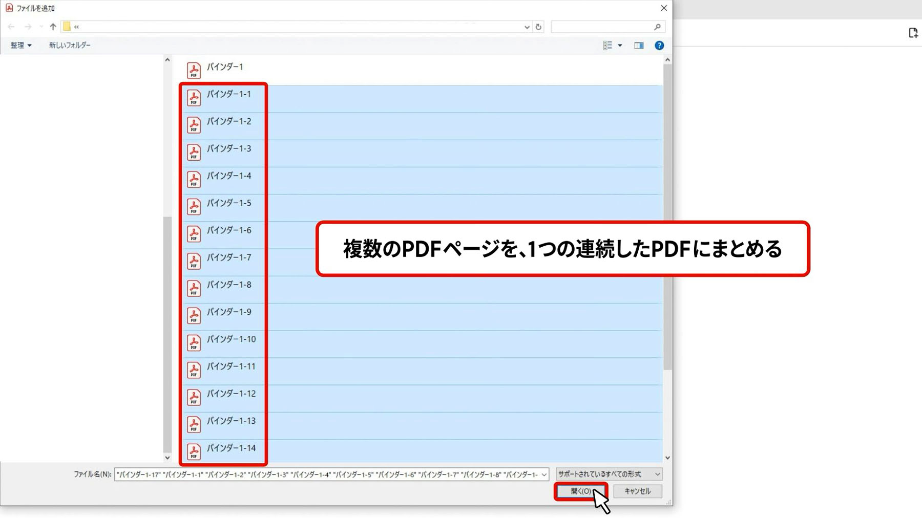 複数のPDFファイルを1つの連続したPDFとして結合する方法です。