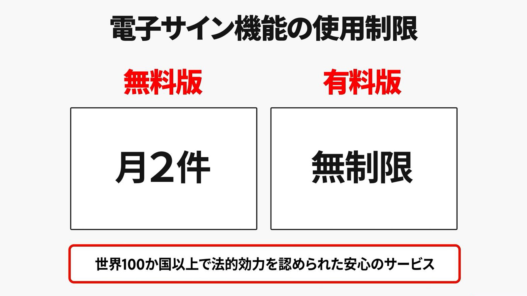 無料版でも利用できますが、署名依頼の送信は月2件までに制限されています。有料版なら無制限で送信可能です。