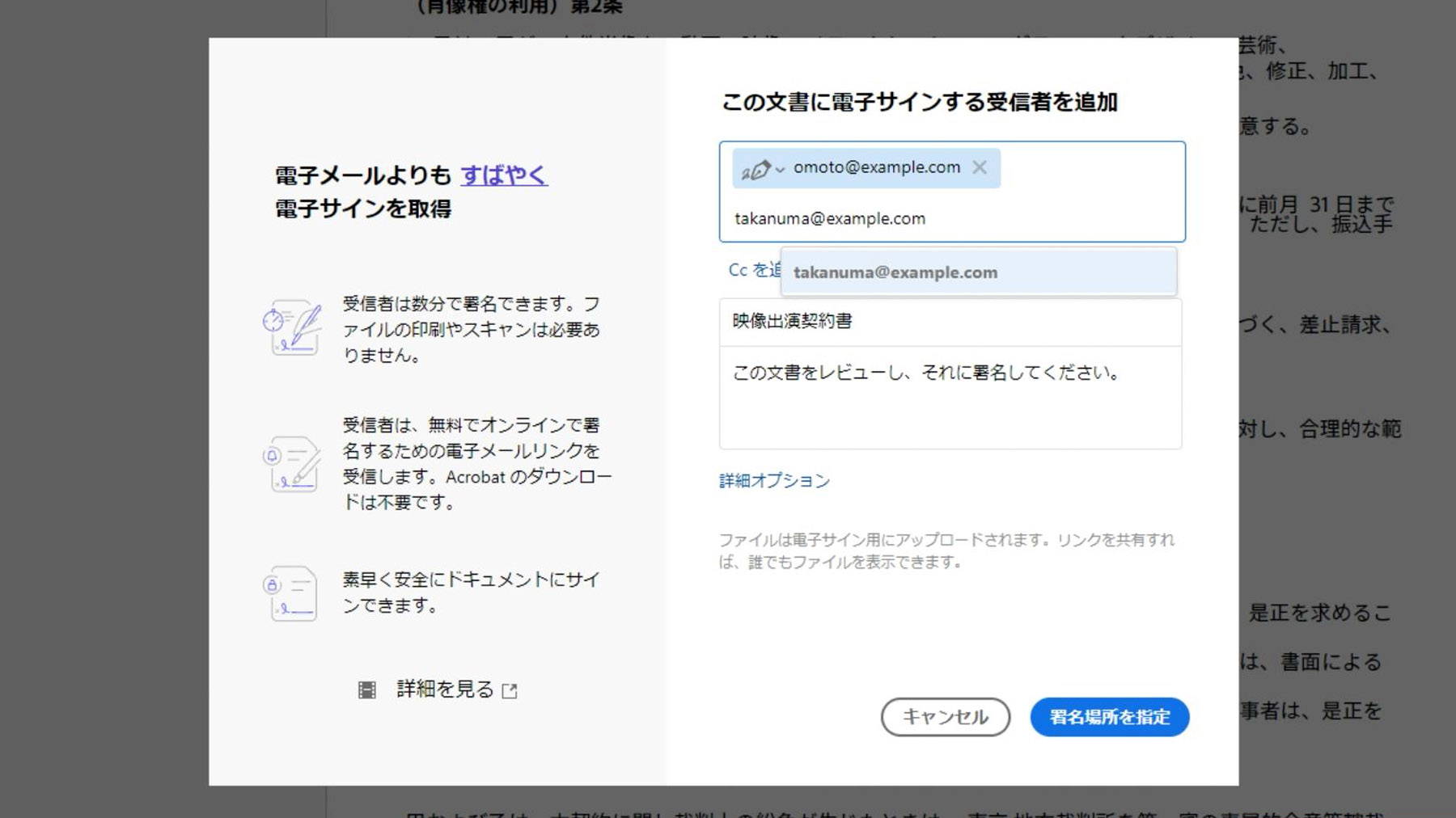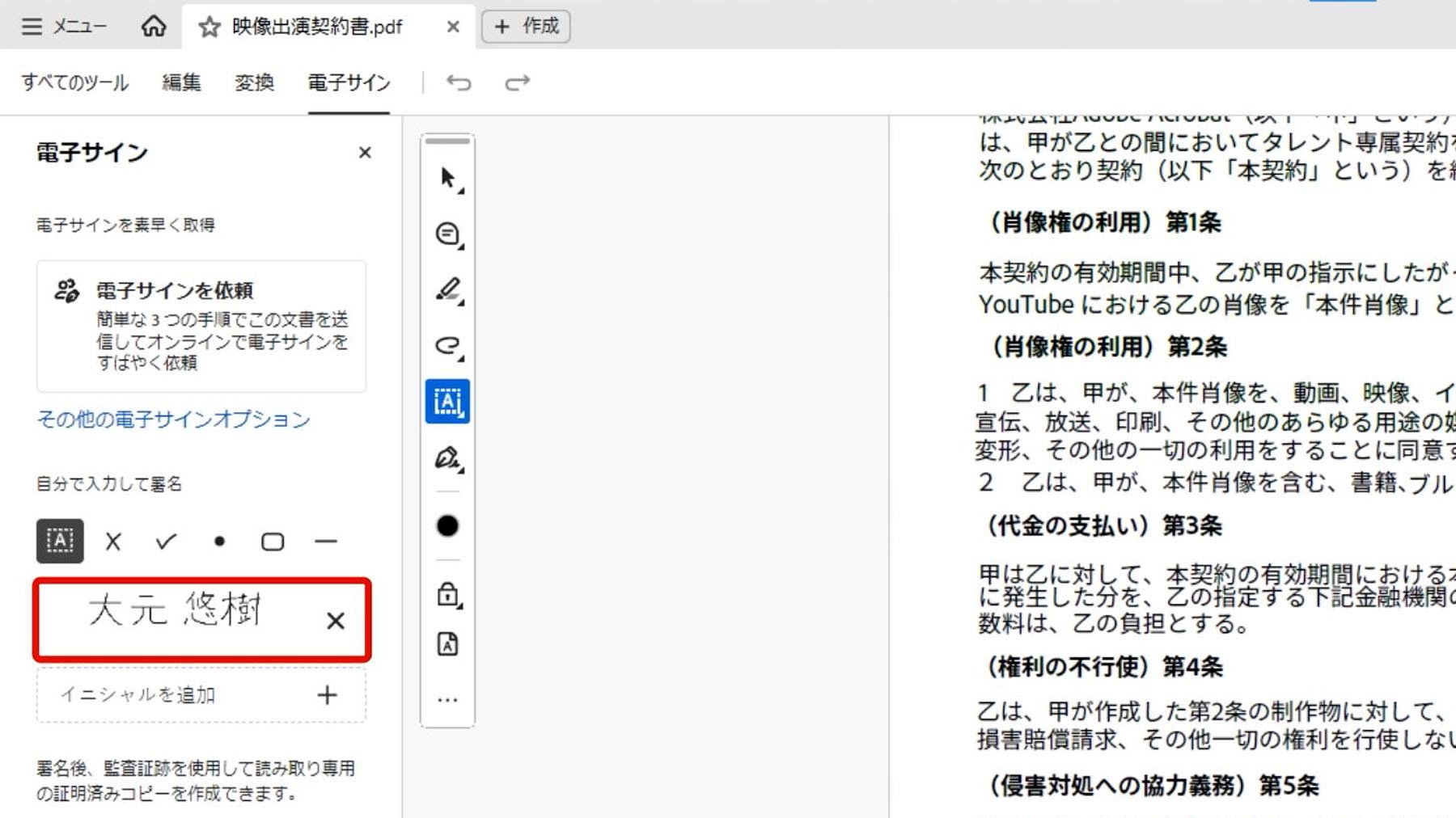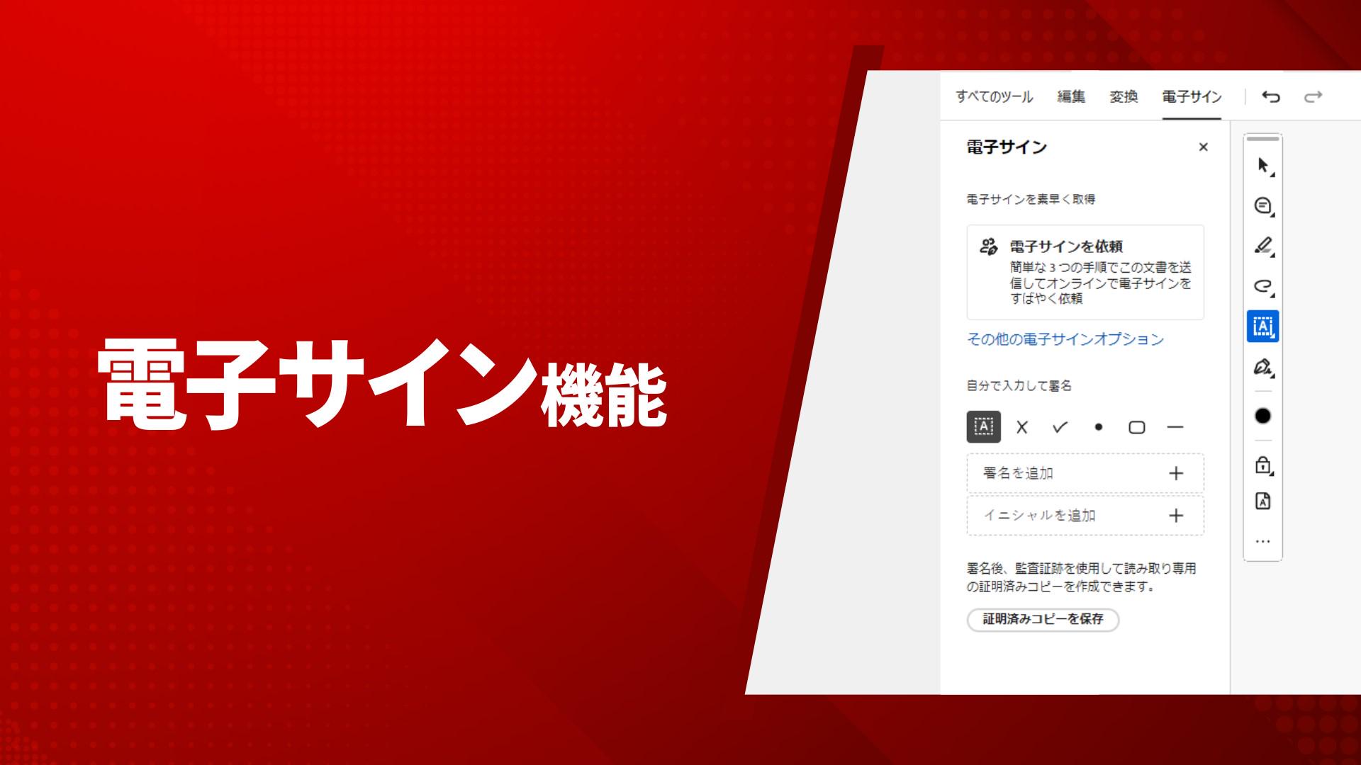 Acrobatには、紙の書類を使わずに契約や承認を進められる「電子サイン」機能があります。