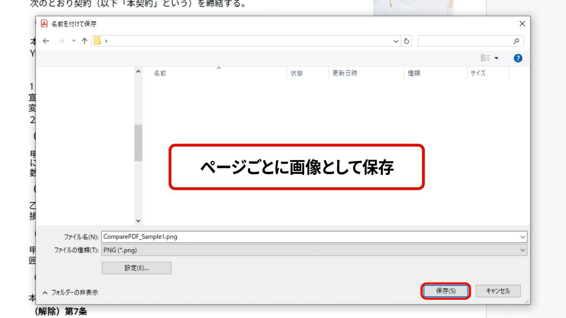 設定後に「保存」を選択すると、ページごとに画像として保存されます。