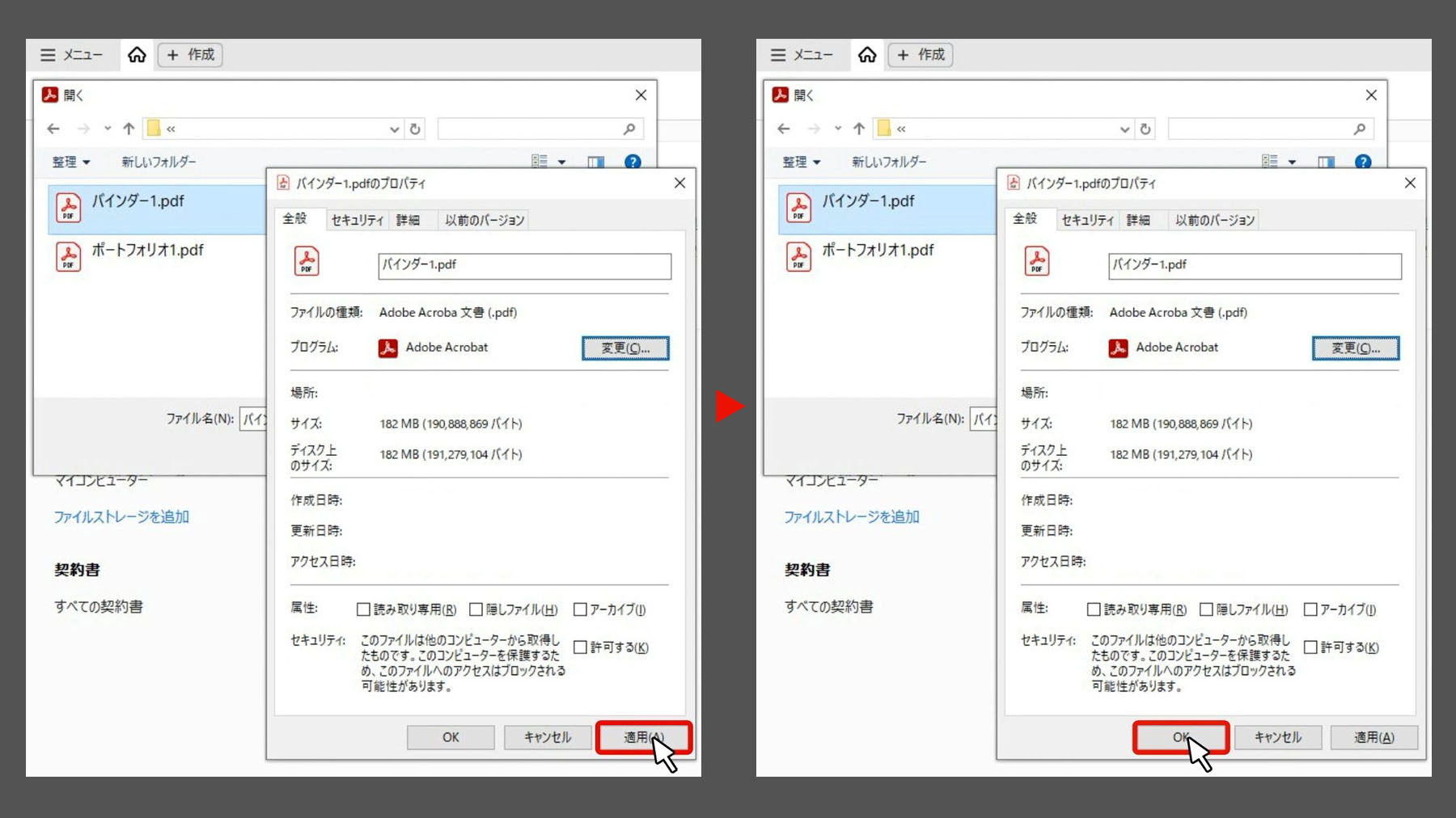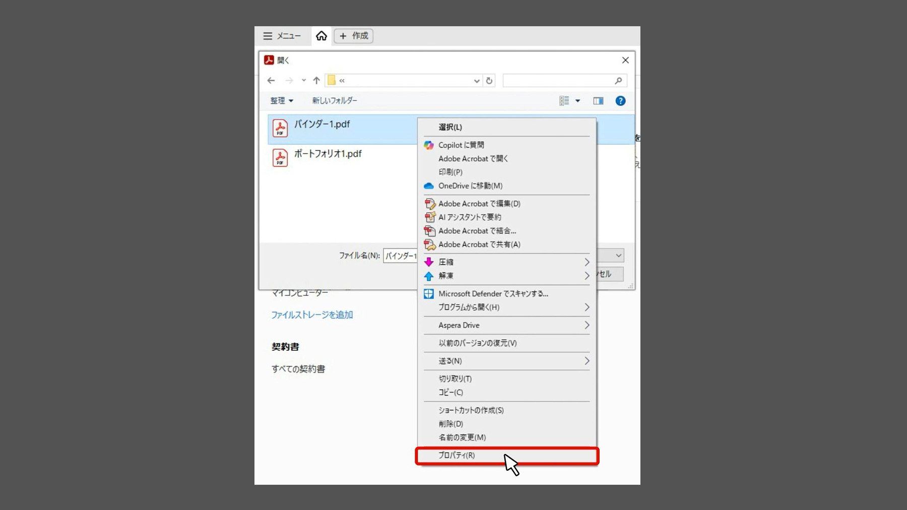 PDFファイルを右クリックし、「プロパティ」を選択します。