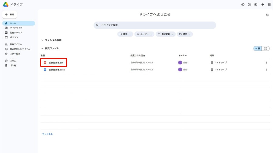 変換したPDFは、Google ドライブに保存されます。