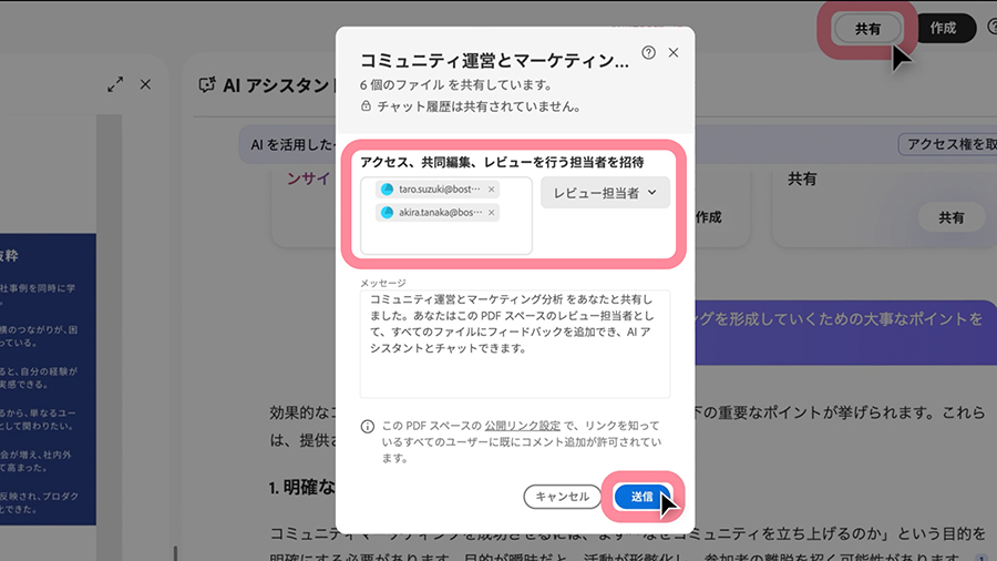 PDF スペースは、複数の関係者に共有して作業することが可能です。
