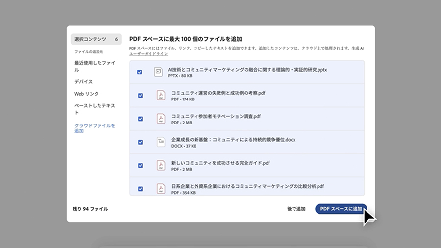 ファイルを確認したら、「PDF スペースに追加」をクリックします。