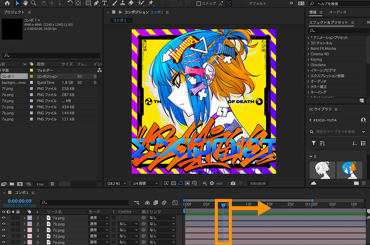 完成したデジタルアート作品をAfter Effectsに読み込んで、エフェクトやアニメーションを適用して動きをつける方法をご紹介します。