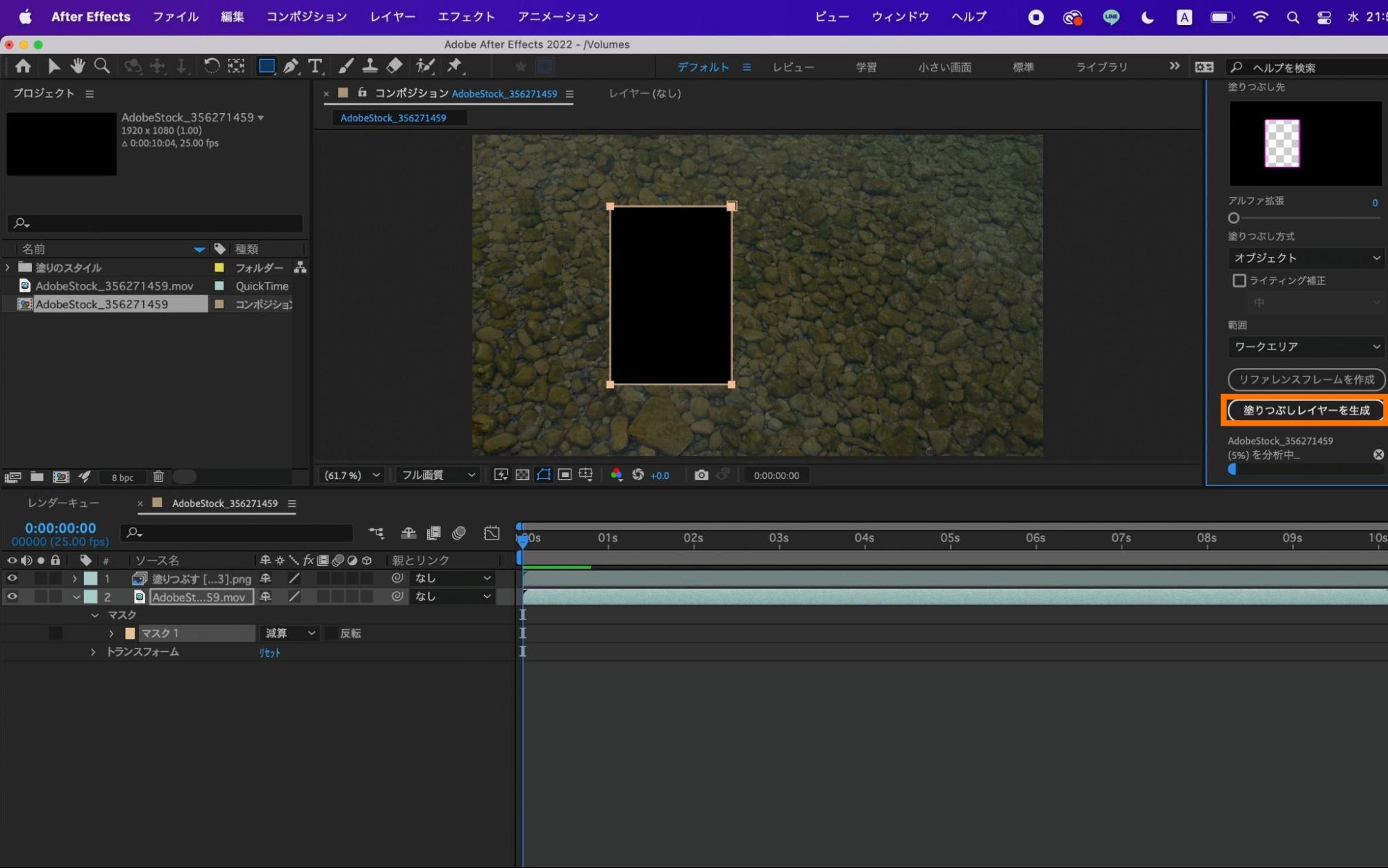 分析が終わったら、素材の上に塗りつぶしレイヤーが作成されます。