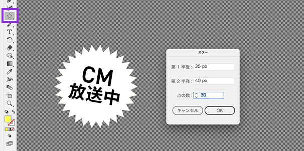たとえば、強調を目的としたトゲのあるアイコンを作成する場合の例を見てみましょう。
