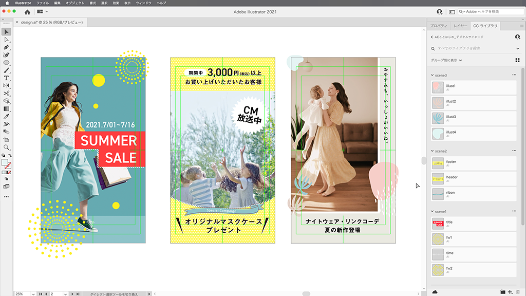 最終的に、3つのシーンのデザインをIllustrator上で作成します。