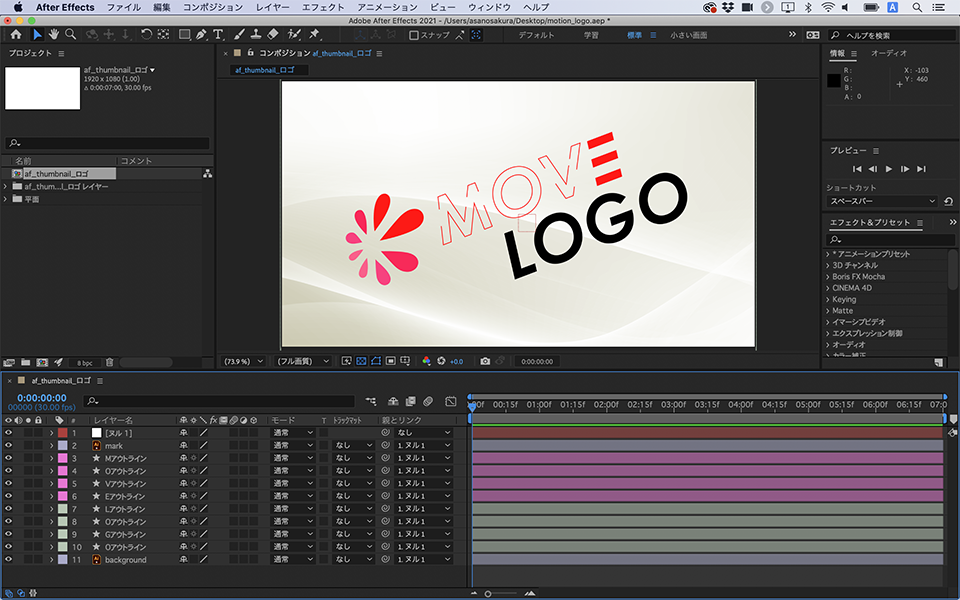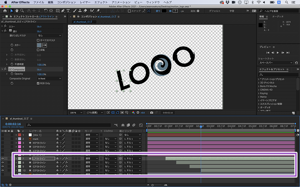 (参考データ:サンプルファイル.aep→「LOGO_comp」コンポジション)