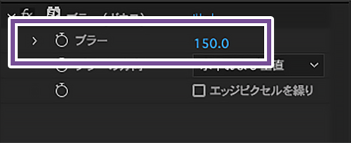 エフェクトコントロールパネルで「ブラー」の数値を調整します。