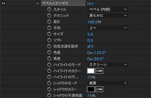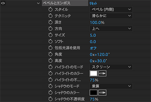 ●ベベルとエンボス :エンボス効果を作る