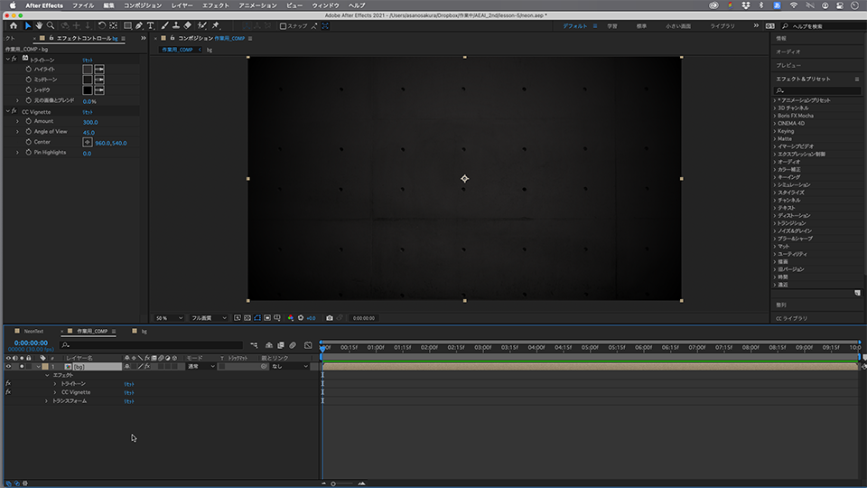 背景用の「bg」のコンポジションを暗くすることができました。