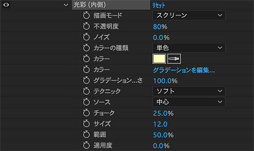 ●グロー: 光のボケを設定する
