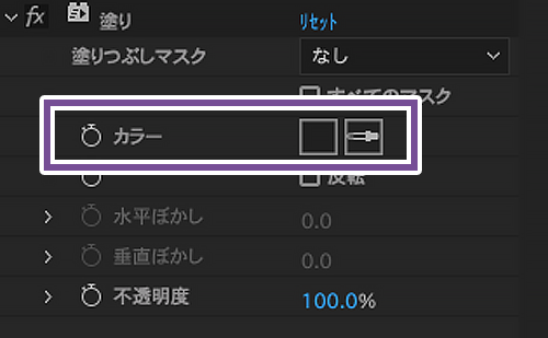 [エフェクト]メニュー→[描画]→[塗り]を選択して、背景色に近い濃いグレーを指定し、文字色を背景色と同じにします。