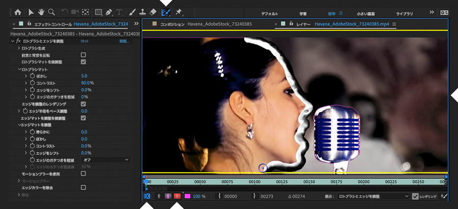 Adobe After Effectsでレイヤーを十分に活用して、ロトブラシを使って背景からアーティストを分離します。