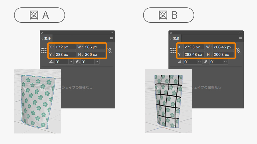 なお、Illustratorからオブジェクトを画像ファイルとして書き出し、Dimensionでそのファイルを読み込む場合は、小数点が入っていても正常に表示されます。