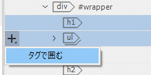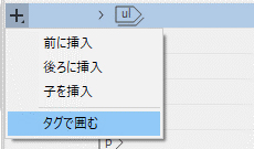 ul の左側にあるプラスボタンをクリックして、図4で示されているように「タグで囲む 」を選択します。