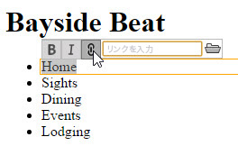 次の箇条書き(Sights )に対して前の手順を繰り返し、sights.html にリンクします。