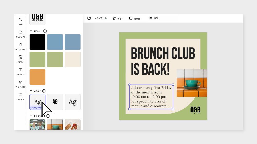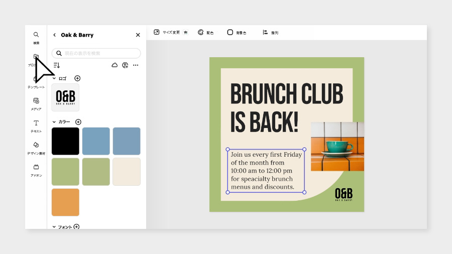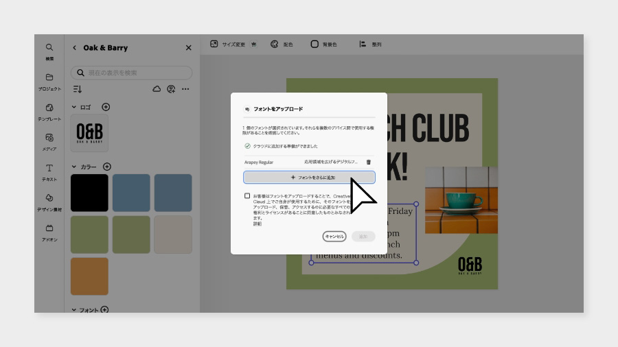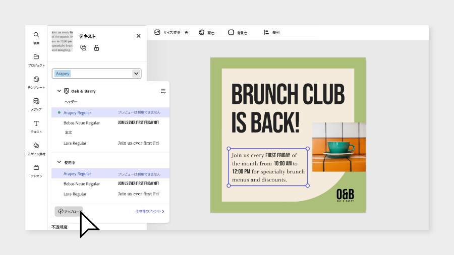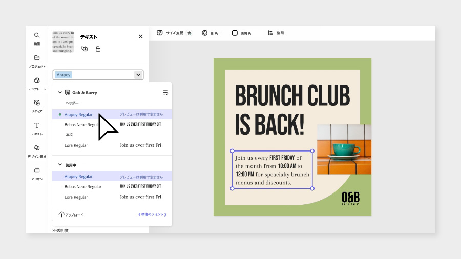 ブランドライブラリにフォントを追加すると、あらゆるデザインで追加したフォントを簡単に使用できます。