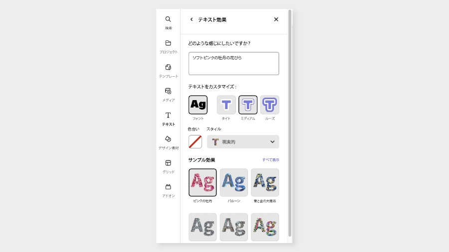 注意: Adobe Expressのこの機能で生成されたコンテンツは、Adobe Fireflyのテキスト効果がベータ版である間は商用利用できません。