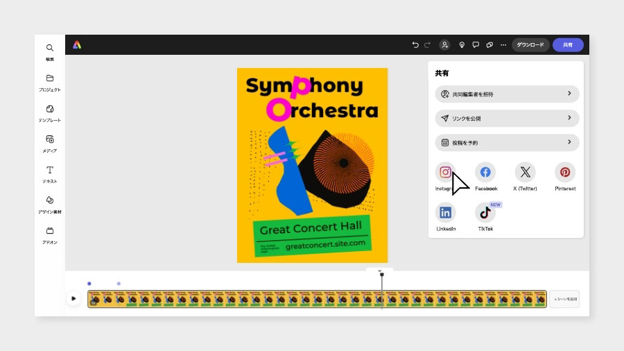 デザインに問題がなければ、SNSに直接投稿することも、投稿のスケジュールを設定することもできます。