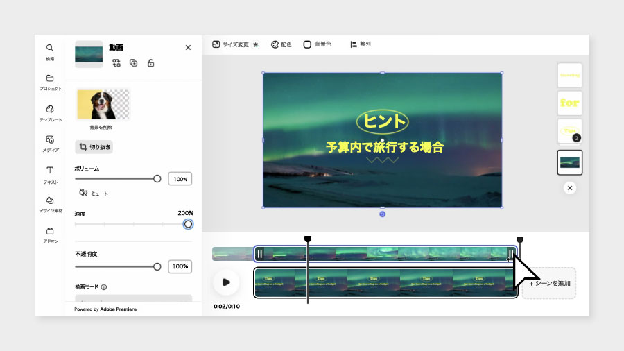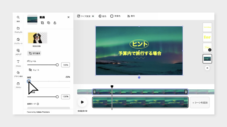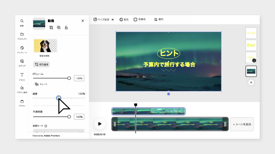 Adobe Expressでは、動画の一部または全体の速度を簡単に変更できます。