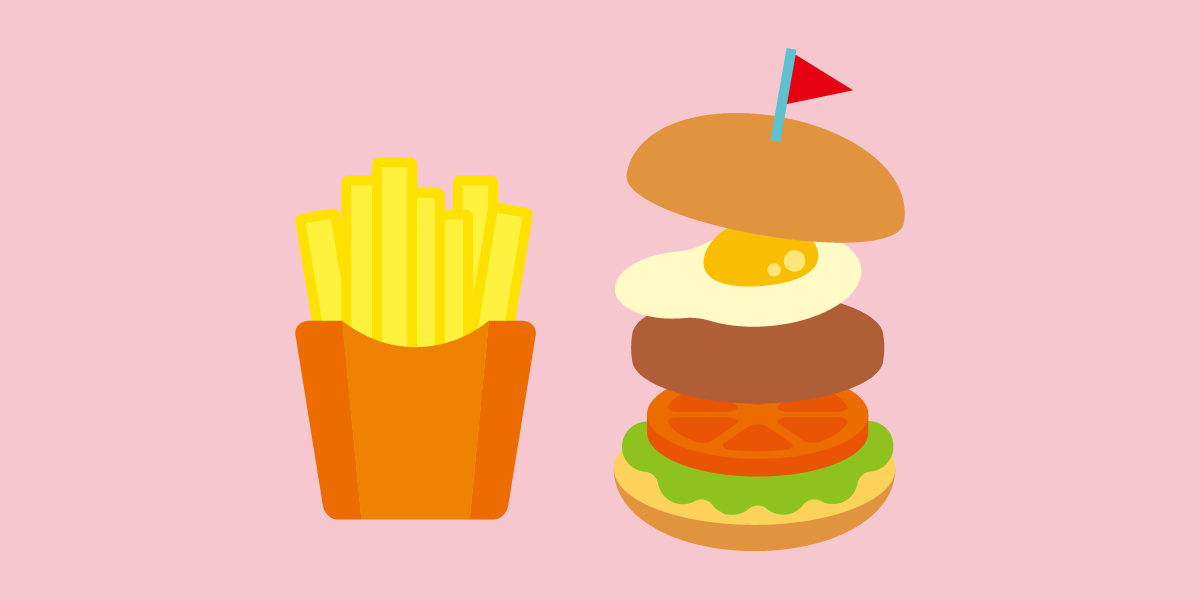 移動と複製、バウンディングボックスを使った回転、重ね順のコントロールなど、オブジェクトの基本的な操作を学習しながら、ポテトとハンバーガーのイラストを完成させましょう。