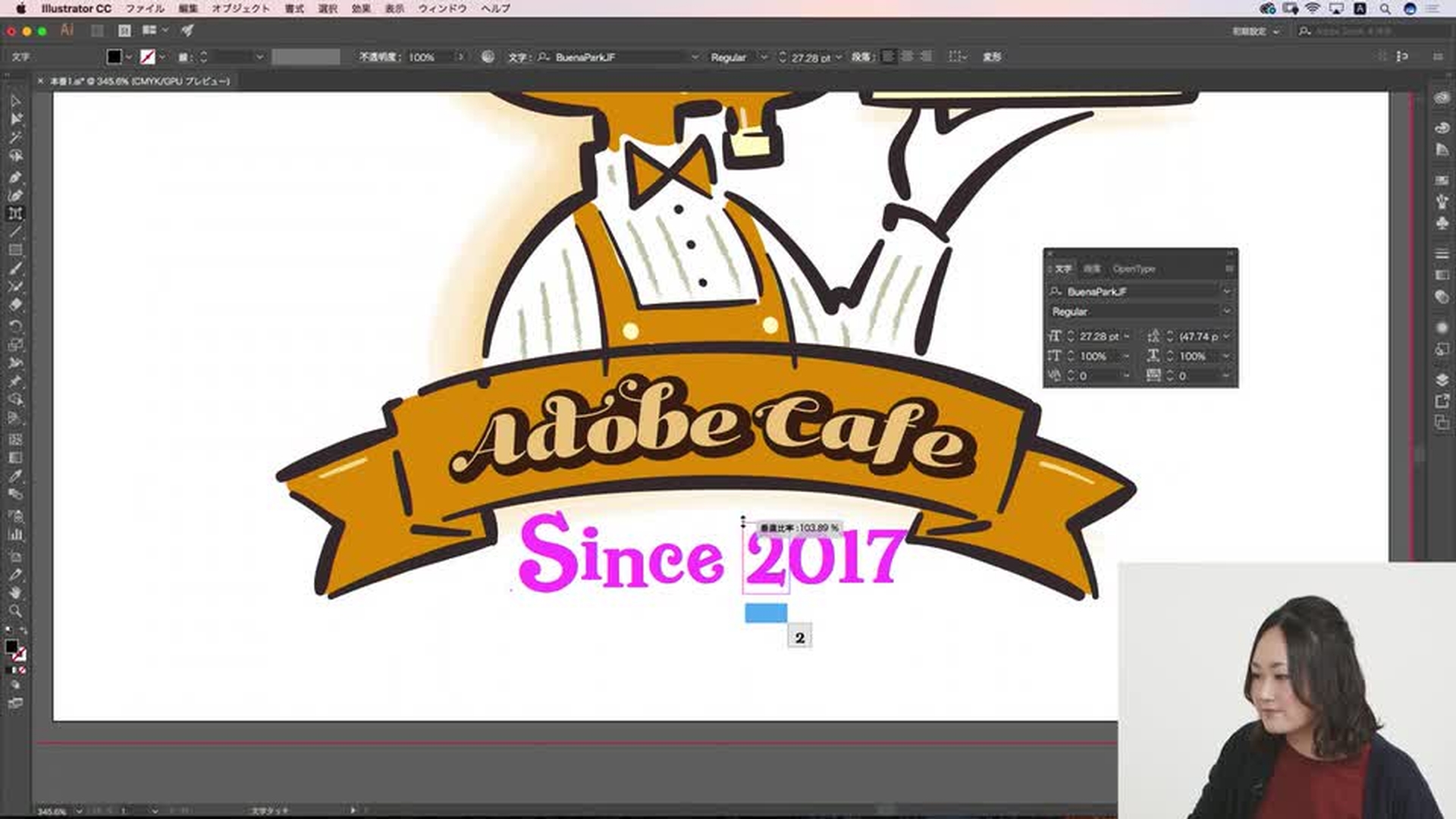 描いた絵の中に文字を追加していきます。ここでは、フリーハンドで描いた線に沿って文字を入力します。また、Typekitから好きなフォントを選択して使用する方法も解説します。