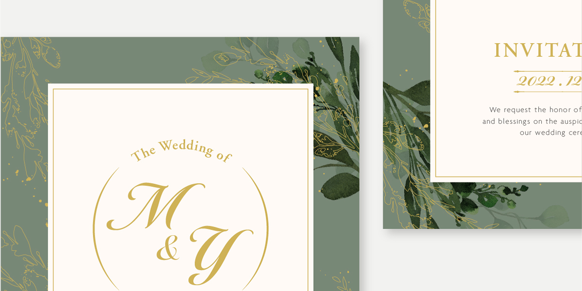 パス上オブジェクトで花のイラストを並べ、結婚式の招待状を装飾します。
