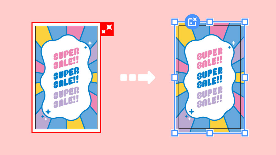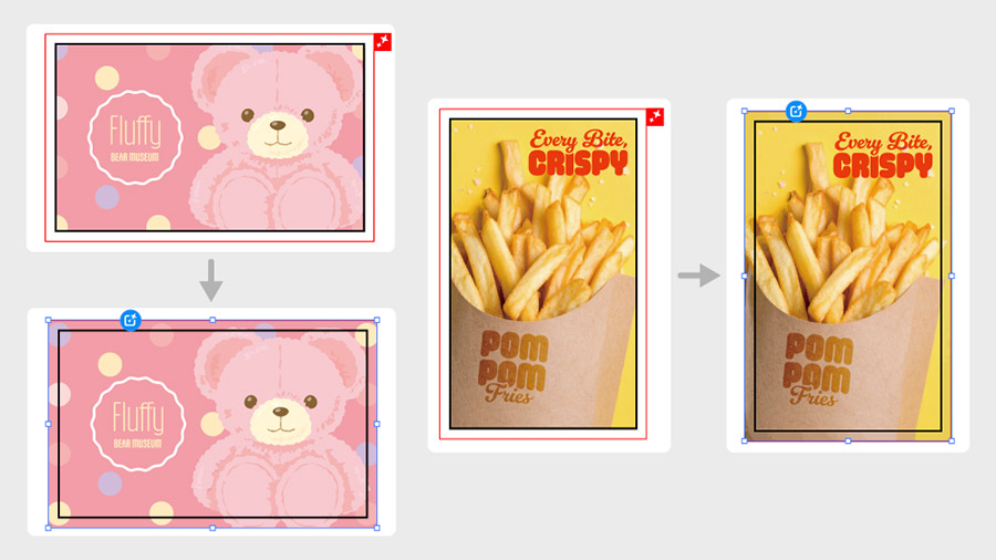 印刷向けデータで裁ち落としが不足しているときは「裁ち落としを印刷」を活用しましょう。レイアウトのフチ部分をひとまわり大きく生成して足りない部分を補います。手作業では加筆・修正が大変なデータを修正したいときにも便利な機能です。