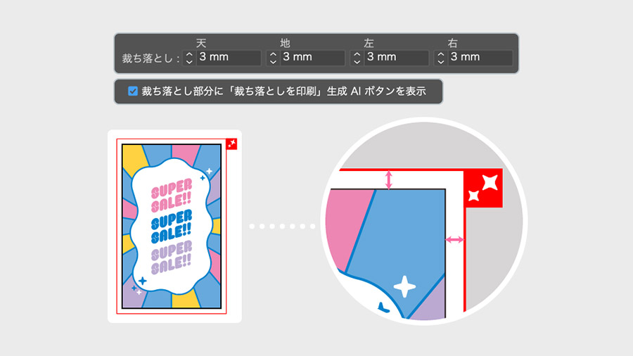 「裁ち落としを印刷」生成AIボタンで生成を実行